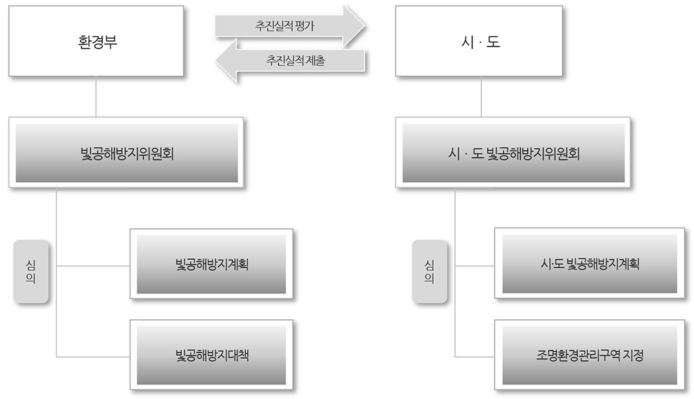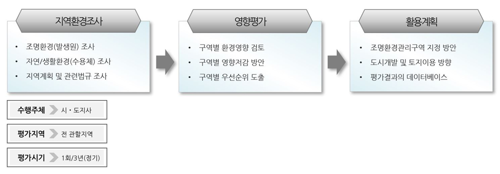 각 시․도지사는 관할지역의 빛환경이 주변지역에 미치는 환경상 영향을 3년마다 1회 이상 평가하고 그 결과를 중앙행정기관(환경부)에 보고한다.